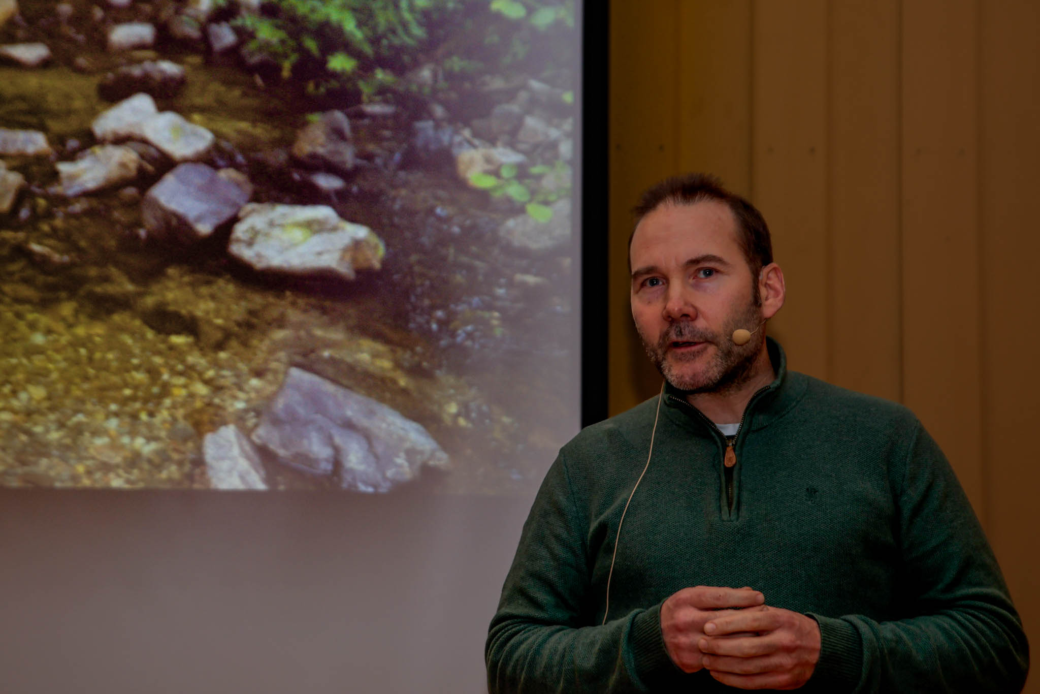 I fjor jobbet Bymiljøetaten med å restaurere to bekker rundt Nøklevann. Terje Laskemoen viste bilder av gravemaskiner som la ut store og små steiner, og kommuneansatte som spadde grus. Målet er både å beskytte mot erosjon, og å gjenopprette gytegroper for ørret.